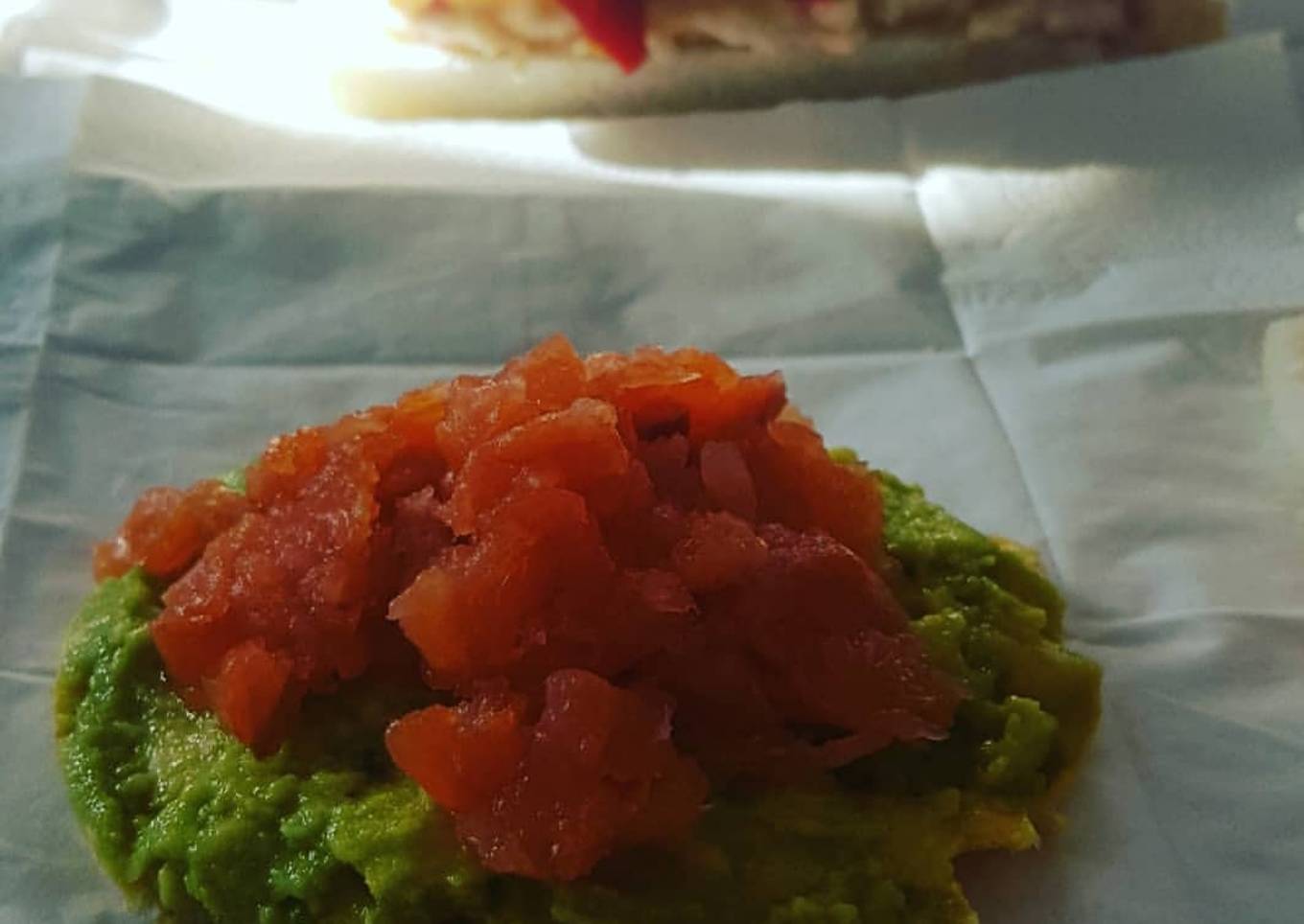 - Después cojeis las tortitas de maíz y las untáis con wl guacamole y por encima le ponéis el salmón a taquitos. Y ya sta.